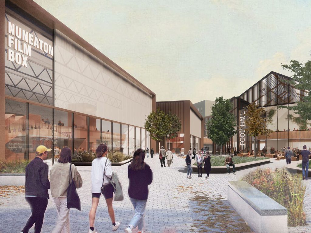 Abbey Street is a mixed-use development sitting at the heart of the Transforming Nuneaton programme, which reflects Nuneaton and Bedworth Borough Council’s 10-15-year regeneration vision for Nuneaton in Warwickshire. Covering 2.3 hectares, it will transform the town centre by bringing in a new set of uses, including leisure, retail, a food hall, a cinema and a Hampton by Hilton hotel, as well as a Digital Skills & Innovation Centre. Abbey Street is being developed with the Council’s strategic development partner, Queensberry. The first phase of development was granted planning permission in April 2021 and construction is already well underway.